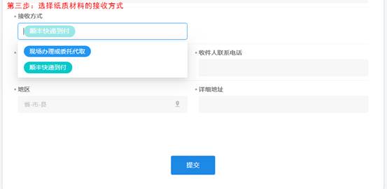 第三步:选择纸质材料的接收方式。