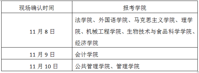 为减少考生等候时间,请考生尽量按照下面时间前来现场确认。因特殊原因不能按规定时间确认信息的考生,可任选其中一天办理报名确认手续。