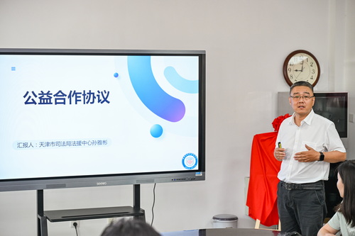 孙雅彬详细讲解了合作内容,双方成立 “天津商业大学教学实践基地”,在法律服务、法治教育和公益宣传等方面开展积极探索,努力推动法律援助服务实践与法学理论教育深度融合,共同为法治社会建设、法学人才培养贡献力量。