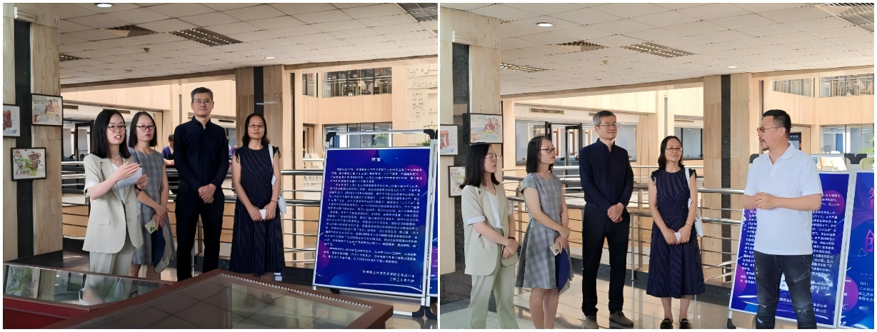陈冠益、余江在观展过程中,逐一驻足观赏各展区作品,认真听取课程建设举措和作品成果介绍。在互动交流环节,校领导对工业设计专业新工科建设和课程作业成果表示高度肯定,特别指出本次展览既体现了新工科建设的育人成果,更展现出工业设计专业交叉学科的特点及学生扎实的专业基本功。