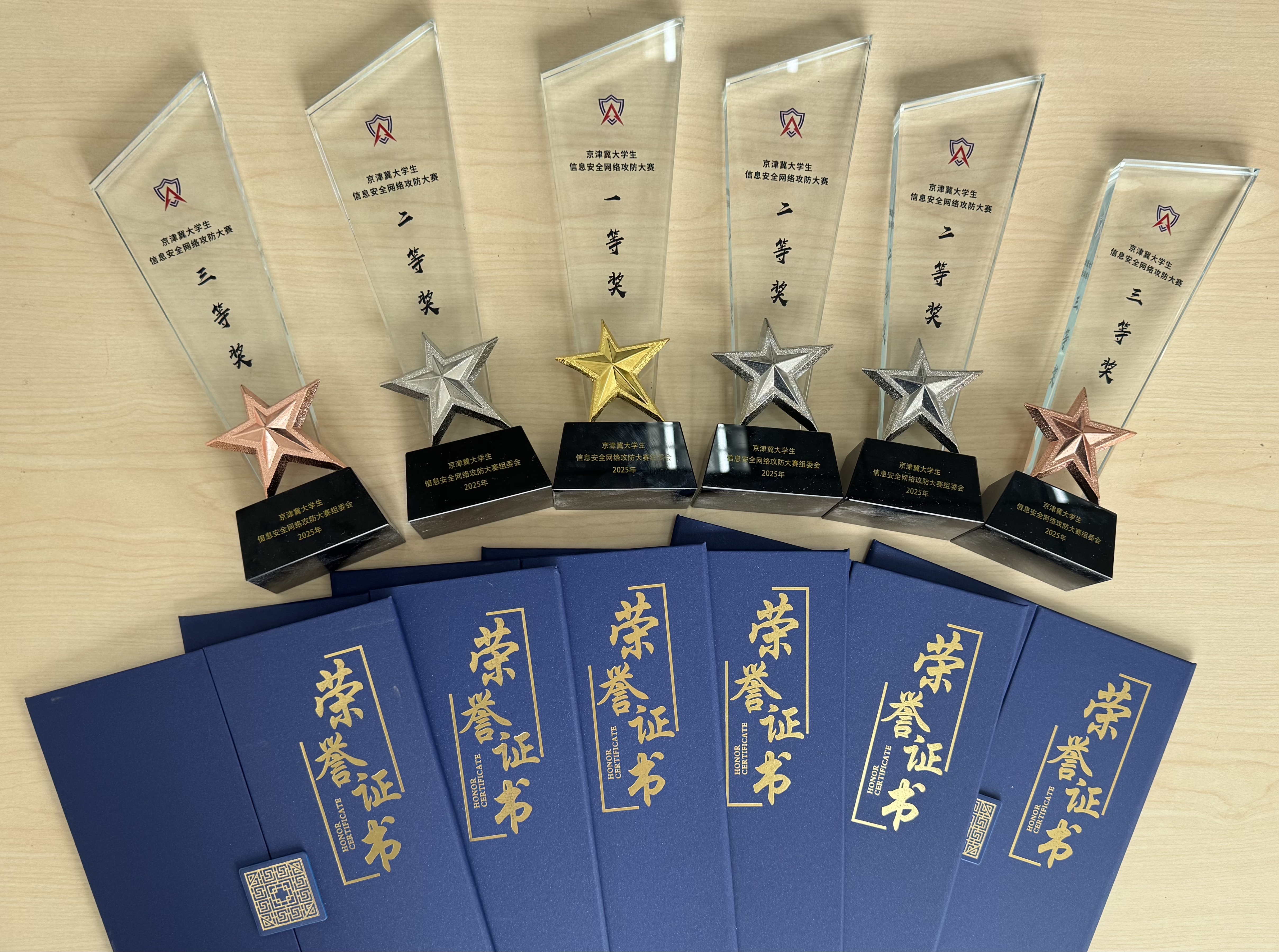 10月12日,由天津市教委主办的2025年京津冀大学生信息安全网络攻防大赛决赛在天津市大学软件学院举行。我校由信息工程学院学生组成的6支参赛队伍全员获奖,其中1支队伍荣获一等奖、3支队伍荣获二等奖,2支队伍荣获三等奖。