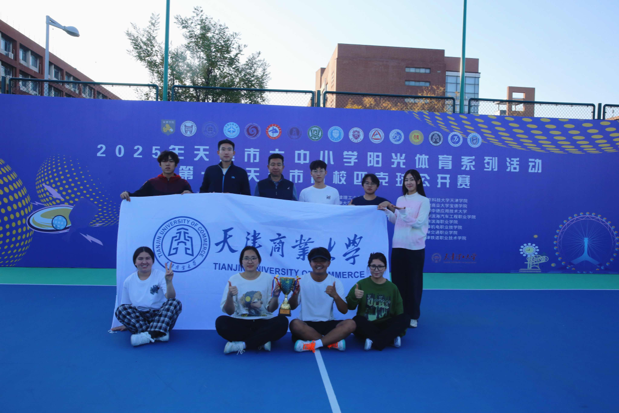 11月1日,天津市首届高校匹克球团体赛在天津理工大学顺利落幕。天津商业大学代表队经过多轮激烈角逐,从小组赛突围至决赛阶段,最终战胜对手斩获冠军,充分展现了我校学子在体育竞技领域的实力与拼搏精神,为学校赢得荣誉。