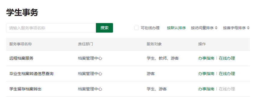 办事大厅为毕业生开通了三项服务:远程档案服务、毕业生转递信息查询、学生留存档案转出。